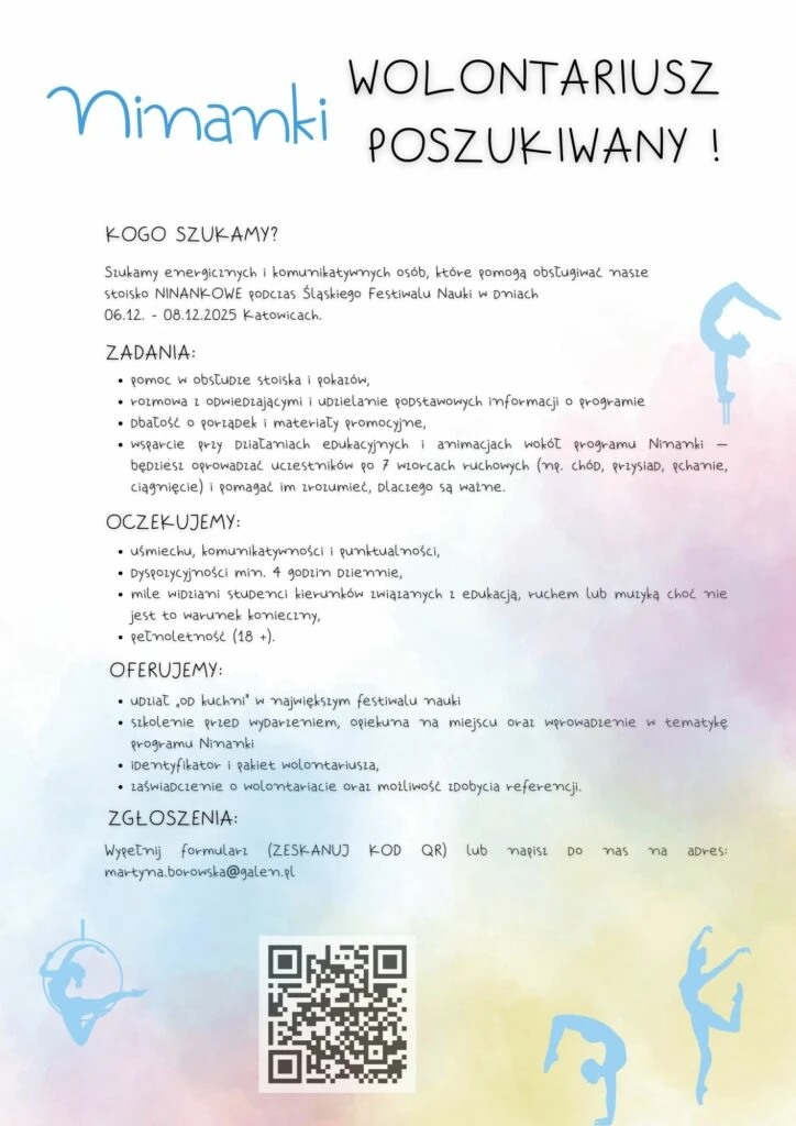 Szukamy energicznych i komunikatywnych osób do wsparcia stoiska programu Ninanki w dniach 6–8 grudnia 2025 r. w Katowicach.