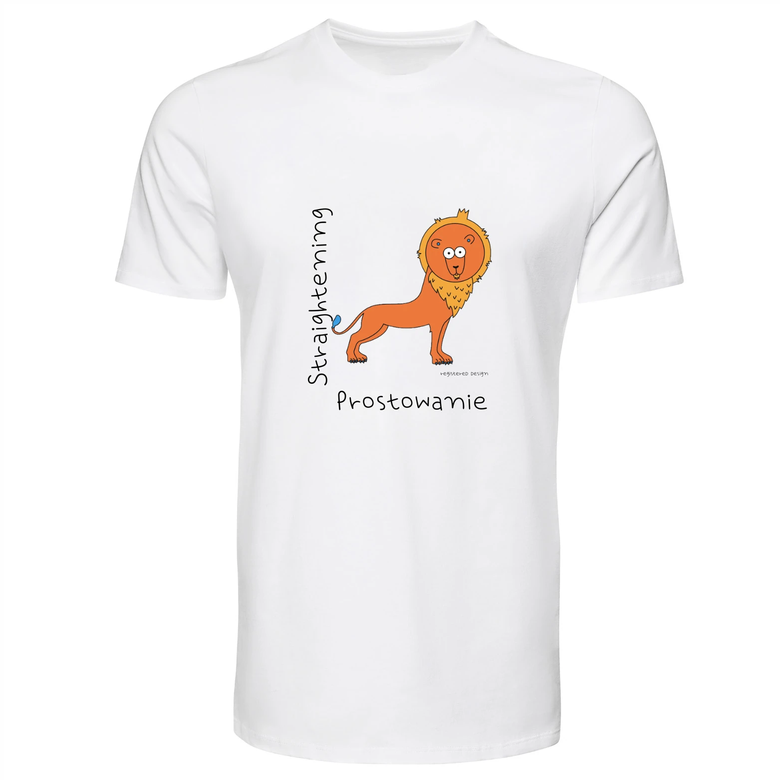 Koszulka dla dorosłych i dzieci z nadrukiem lwa. W kolekcji koszulek Ninanki – ten zwierzak przedstawia wzorzec prostowania tułowia.