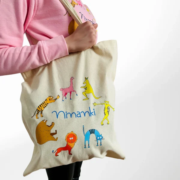 Torba została uszyta z solidnej, naturalnej bawełny, dzięki czemu jest ekologiczna i przyjemna w dotyku. Materiał jest delikatny i lekki, co wpływa na komfort codziennego noszenia i sprawia, że torba świetnie sprawdza się na co dzień. Torba bawełniana z logo programu Ninanki.